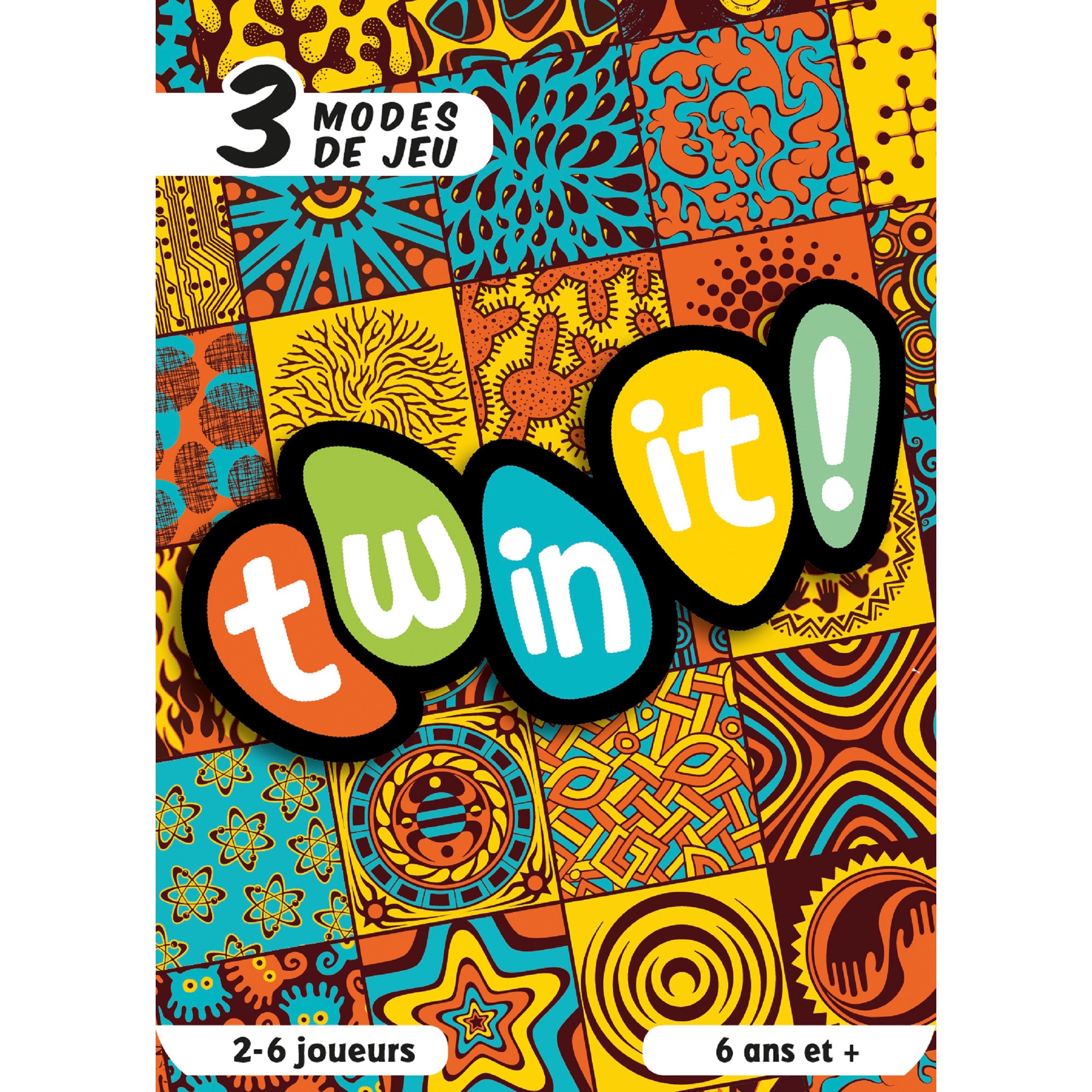 A Twin it, les cartes s'accumulent sur la table en formant une mosaïque colorée. Votre but ? Essayer de détecter plus vite que les adversaires les paires de cartes aux motifs exactement identiques !. Les cartes vont s'accumuler sur la table : retrouvez vite les motifs strictement identiques, qu'ils soient au sommet d'une pile, tirés il y a plusieurs tours ou il y a quelques secondes à peine. Certains sont même en triple !. 3 modes de jeu sont inclus : compétitif, en équipes et coopératif !