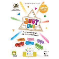 Just One, le jeu d'ambiance qui plaît à toute la famille (primé au Spiel des Jahres 2019), revient dans une version relookée. Découvrez une boîte modernisée et un contenu optimisé avec 550 nouveaux mots ! Un joueur doit deviner un mot tiré au hasard et ferme les yeux. Les autres écrivent chacun un indice sur leur chevalet. Puis, ils sont comparés. Si certains sont identiques on les efface ! Le joueur se contentera des indices restants pour trouver le mot. Juste One est un jeu coopératif, le but commun étant de trouver un maximum de mots.
