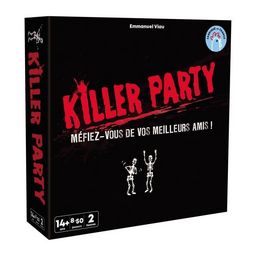 Killer Party est un jeu d'ambiance délirant pour briser la glace lors de vos soirées entre amis. Chaque joueur a une mission et une cible a éliminer. Le tueur qui a éliminé le plus de joueurs et le dernier survivant seront récompensés. Convient aux adultes et aux enfants a partir de 14 ans. Durée de