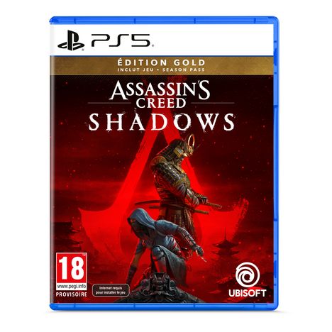 """BONUS DE PRÉCOMMANDE*Précommandez le jeu dès aujourd'hui pour obtenir la quête bonus Laissé pour compte.CONTENU DE L’ÉDITION GOLDJouez jusqu'à trois jours plus tôt avec l’Édition Gold, qui comprend le jeu de base et le Season Pass.**EXPLOREZ LE JAPON FÉODAL DU XVIè SIECLEExplorez le monde ouvert captivant du Japon féodal, des villes fortifiées spectaculaires aux ports animés en passant par les paisibles sanctuaires et les paysages dévastés par les combats. Bravez des conditions météorologiques imprévisibles, des changements de saisons et des environnements réactifs.INCARNEZ NAOE, UNE ASSASSIN SHINOBI ET YASUKE UN SAMOURAÏ LÉGENDAIREExplorez leurs récits captivants et maîtrisez leurs styles de jeu complémentaires. Avec Naoe, utilisez la discrétion pour éviter de vous faire repérer et l'agilité pour déboussoler vos ennemis. Avec Yasuke, frappez vos adversaires avec puissance et précision mortelle. Débloquez de nouvelles compétences, de l'équipement et progressez de manière distincte pour chaque personnage.CRÉEZ VOTRE PROPRE RÉSEAU D'ESPIONSMettez à profit les informations récoltées en explorant le monde et créez votre propre réseau d'espions qui surveilleront, écouteront et traqueront votre prochaine cible à travers divers lieux. Recrutez de nouveaux alliés aux aptitudes uniques pour vous aider à accomplir vos missions.PERSONNALISEZ VOTRE REPAIRECréez un repaire entièrement personnalisable pour votre ligue de shinobi où vous pourrez entraîner votre équipe, fabriquer de l'équipement, interagir avec des personnages clés et choisir la disposition, la décoration et les accessoires de votre base.*Offre susceptible d'être modifiée. Ubisoft se réserve le droit de vendre et/ou d'offrir ce contenu séparément à tout moment.**Jouez au jeu jusqu'à 3 jours avant la date de sortie officielle. Une connexion Internet et un compte Ubisoft sont requis pour récupérer le contenu numérique.Offre sujette à modification. Le contenu peut être disponible à tout moment à l'achat et/ou offert séparément à la seule discrétion d'Ubisoft."""