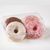 DONUT PINKY +/‐ 53g: enrobé d'un nappage rose (13%), décoré avec des vermicelles blancs (3,5%).