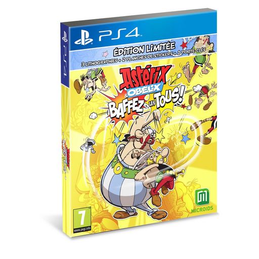 Découvrez le dernier jeu d'aventure du duo le plus célèbre de France ! Astérix et Obélix : Baffez les tous ! Edition Limitée - PS4. Si vous êtes les plus braves, il faudra le prouver ! Dans Astérix et Obélix : Baffez-les Tous !, nous sommes en 50 avant Jésus Christ et toute la Gaule est occupée par les Romains… Toute ? Non ! Les joueurs pourront incarner Astérix et Obélix et devront traverser les paysages les plus iconiques de la saga tout en affrontant une flopée d’ennemis, du simple légionnaire aux pirates, en passant par des brigands ou encore les célèbres Normands.