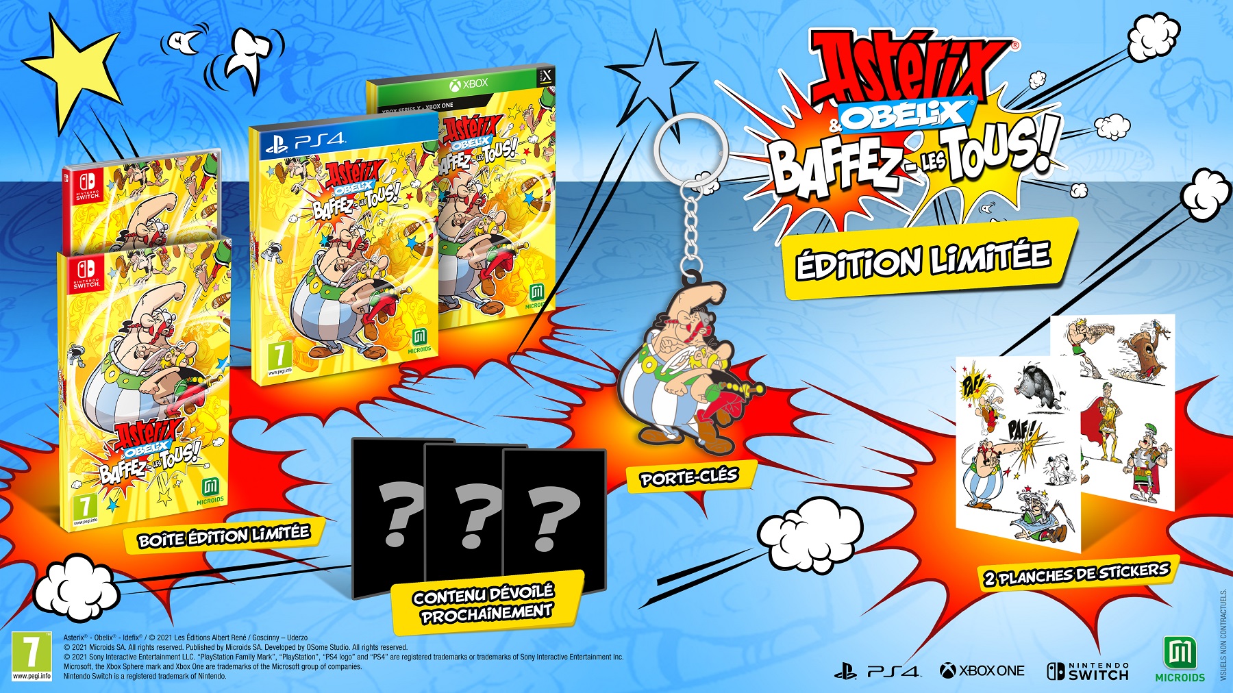 Découvrez le dernier jeu d'aventure du duo le plus célèbre de France ! Astérix et Obélix : Baffez les tous ! Edition Limitée - Xbox One. Si vous êtes les plus braves, il faudra le prouver ! Dans Astérix et Obélix : Baffez-les Tous !, nous sommes en 50 avant Jésus Christ et toute la Gaule est occupée par les Romains… Toute ? Non ! Les joueurs pourront incarner Astérix et Obélix et devront traverser les paysages les plus iconiques de la saga tout en affrontant une flopée d’ennemis, du simple légionnaire aux pirates, en passant par des brigands ou encore les célèbres Normands.