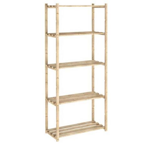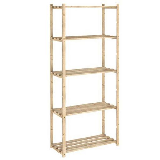 Astigarraga NC-5-30 - Étagère montants avec bois de section : 40 x 16 mm5 tablettes à lattes, réglables en hauteurEn pin massif brutCharge par tablette : 40 kgDimensions (HxLxP): 171 x 65 x 30 cmPrêt à peindre ou à vernir