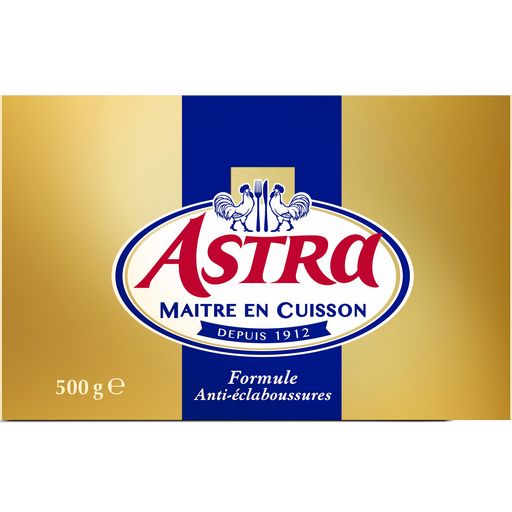 Astra est une margarine dédiée à la cuisson qui permet de réaliser tout type de plats et de pâtisserie, que ce soit des viandes, des rôtis, des plats mijotés, des tartes ou gâteaux.