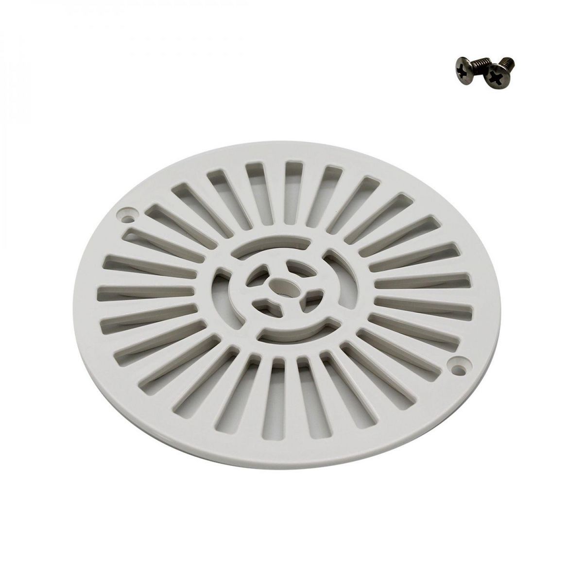 Grille bonde de fond ronde avec vis pour piscine béton - Diam 17,5 cm - Blanc