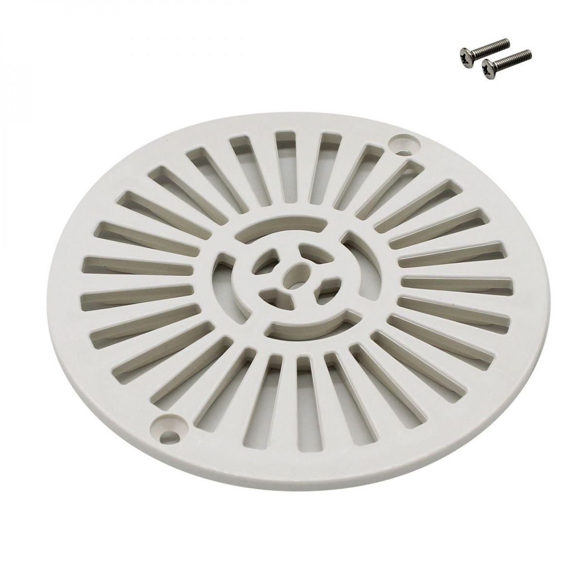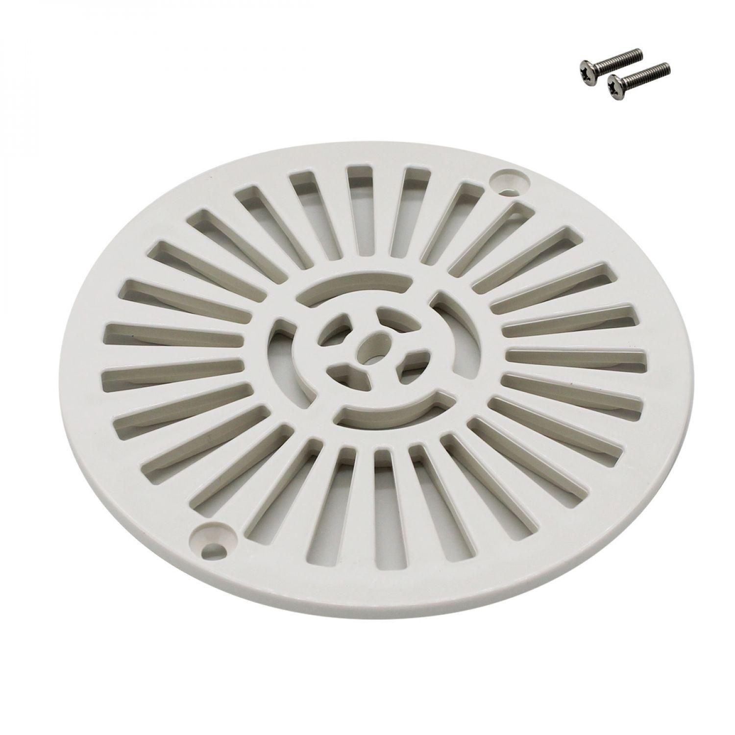 Grille bonde de fond ronde avec vis pour piscine liner - Diam 17,7 cm - Blanc