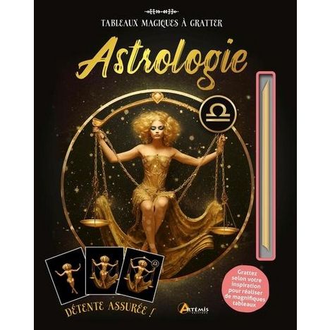 ASTROLOGIE. AVEC 12 TABLEAUX DETACHABLES A GRATTER ET 1 CRAYON BIFACE EN BOIS, Artémis