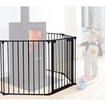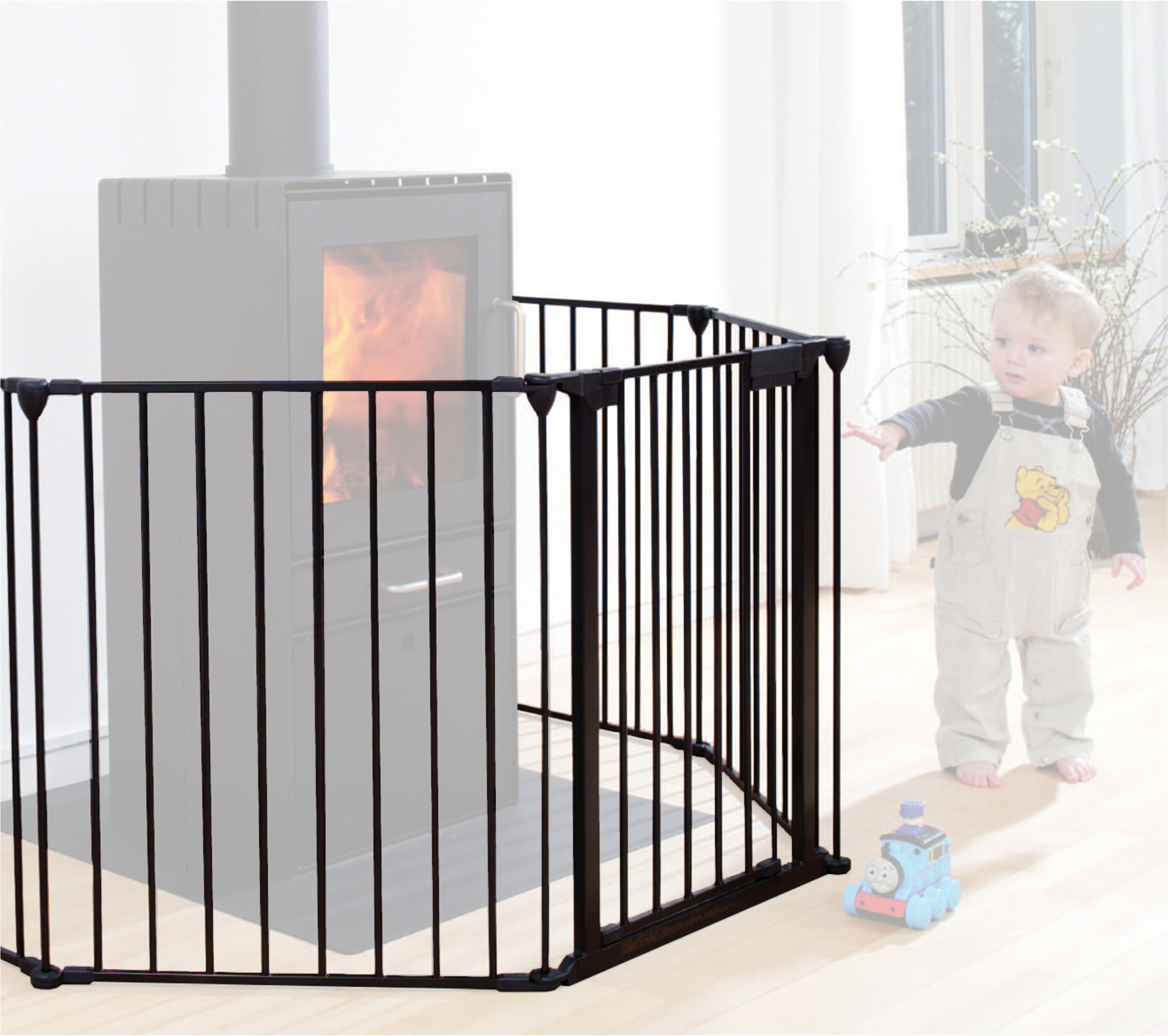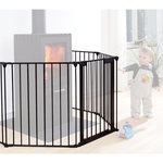 AT4 vous propose cette barrière de sécurité pare-feu en métal noir 240 cm. Une barrière pare-feu idéale pour tenir les enfants à distance du danger : cheminée, poêle à bois, escalier. Cette barrière de sécurité en métal laqué noir se constitue de 6 pans dont l’un est muni d’un portillon. Ils s’articulent pour former un espace parfaitement sécurisé. Elle dispose d'un système de fermeture manuel.