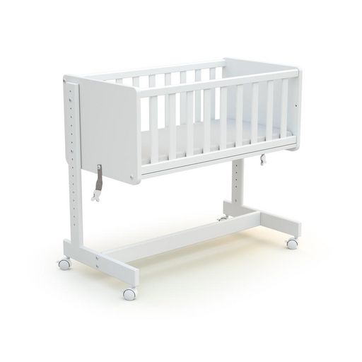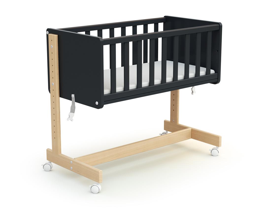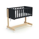 Grâce aux 4 roulettes à frein, le berceau en bois peut être déplacé facilement sans réveiller bébé.