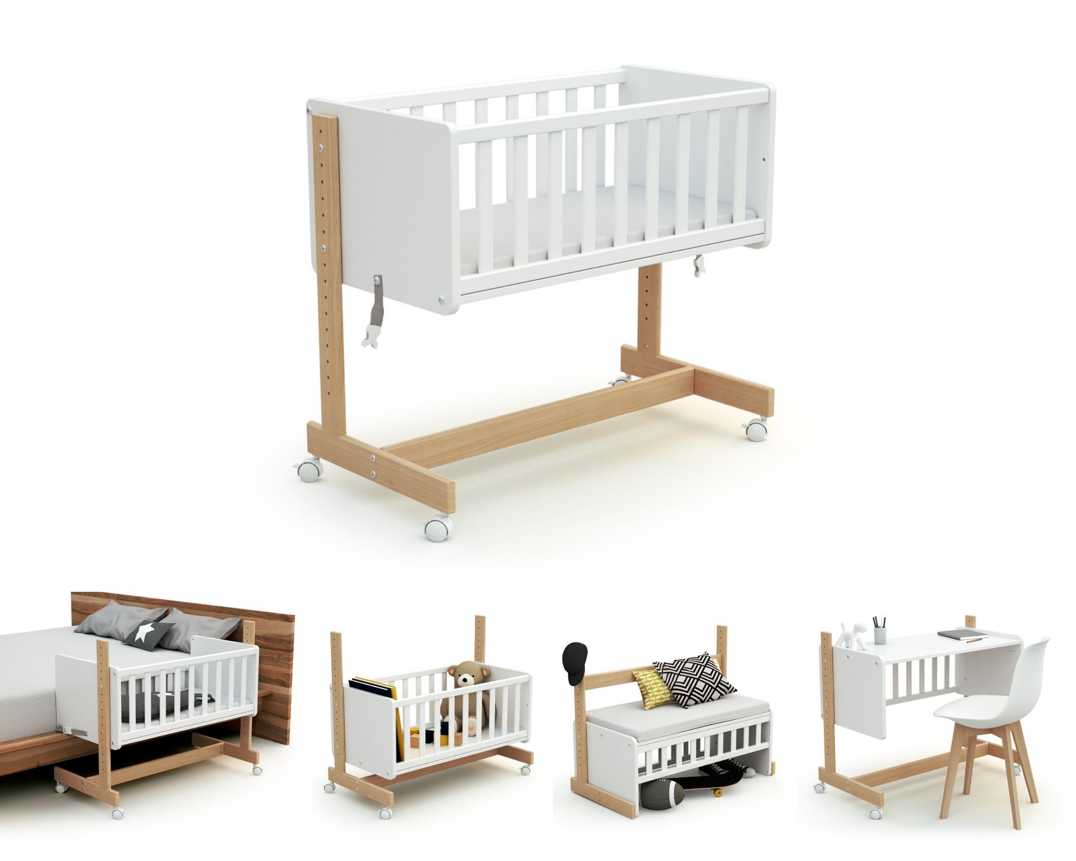 Un berceau-cododo transformable astucieux et technique qui évolue au rythme de votre enfant. Il accueillera bébé pour de douces nuits à vos côtés (configuration cododo) ou tout seul (configuration berceau simple). Et quand bébé grandit, il sera toujours utile puisque vous pourrez le transformer en coffre à jouets, en banquette ou même en bureau junior. Il s'adapte vraiment à toutes les situations.