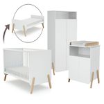 Chambre bébé lit, commode à langer et armoire Blanc et Hêtre Verni