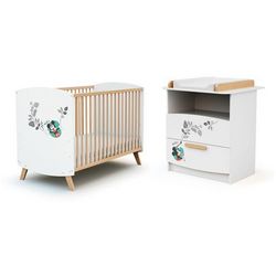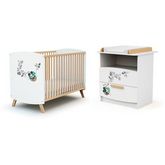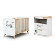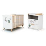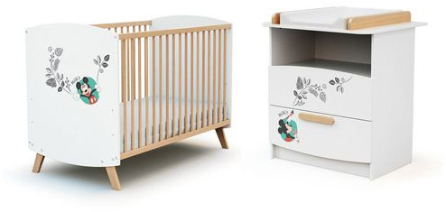 Ensemble lit bébé 60x120 cm et commode à langer 2 tiroirs MICKEY DISNEY Blanc et Hêtre