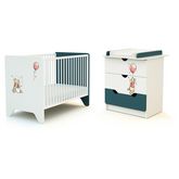 Ensemble lit bébé 60x120 cm et commode à langer 3 tiroirs WINNIE BALLON DISNEY Bleu canard