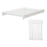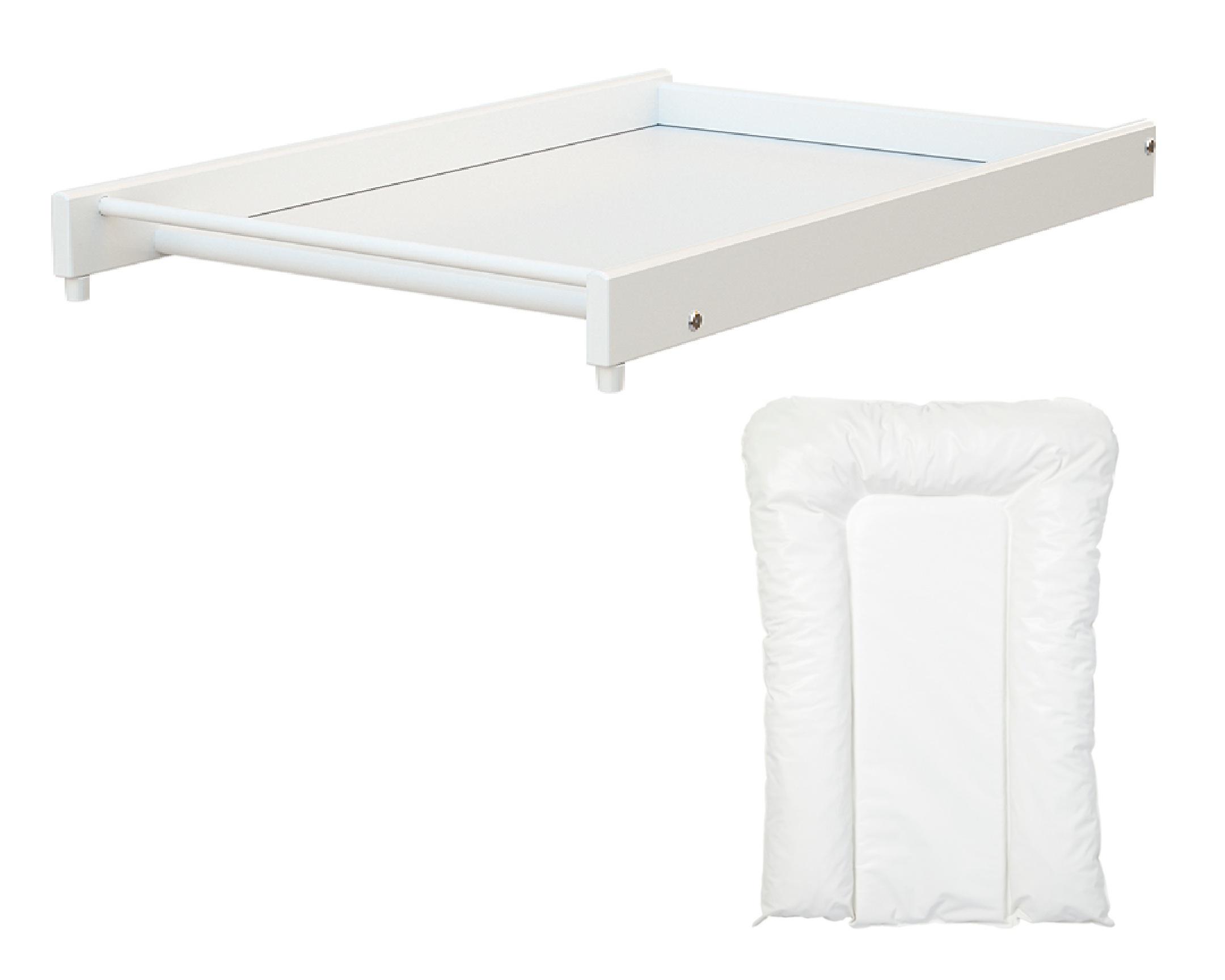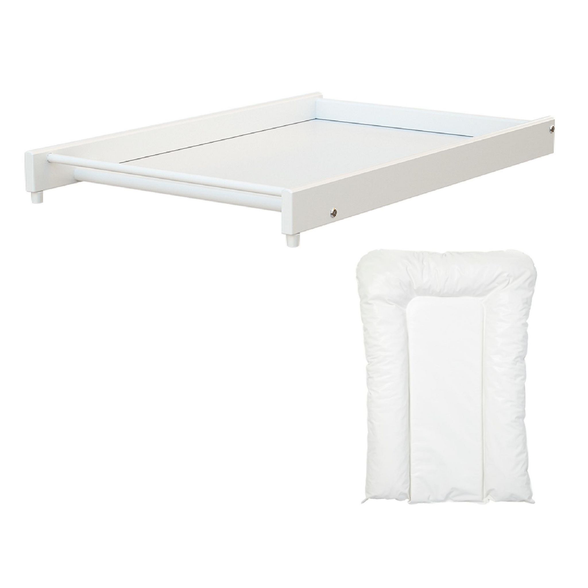 Avec matelas à langer de 50 × 70 cm inclus. Compatible avec lits bébés de largeur extérieure de 62,5 à 64,5 cm et de 71,5 à 77cm.