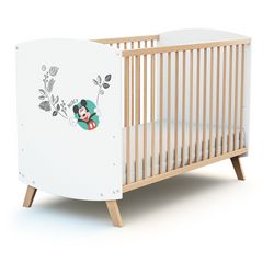 Lit bébé 60x120 cm MICKEY DISNEY Blanc et Hêtre Verni