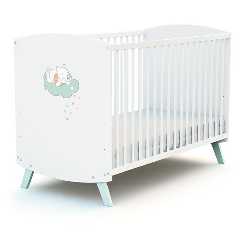 Un petit lit aux formes et couleurs douces pour une chambre de bébé apaisante. Winnie l'ourson veille sur les nuits de bébé depuis son petit nuage. Le sommier réglable sur 3 hauteurs permet une utilisation parfaitement ergonomique. Sommier à lattes pour une meilleure ventilation du matelas et un confort de sommeil optimal. Utilisation ergonomique grâce au sommier réglable sur 3 hauteurs. Pour matelas 60 x 120 cm, hauteur maxi 12cm (non fourni). Assemblage mécanique pour une durée de vie sur plusieurs générations. AT4 n’utilise que des peintures acryliques (à base d’eau). Livré en Kit, à monter soi-même..