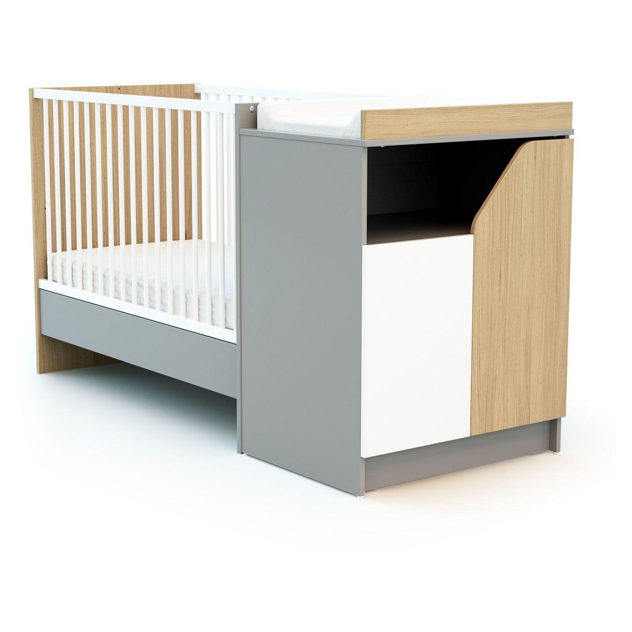 Lit bébé combiné 60x120 cm évolutif en 90x190 cm CARNAVAL Blanc, Gris et Chêne