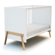 Ses côtés escamotables favorisent l'apprentissage de l'autonomie dès que l'enfant peut monter et descendre tout seul de son lit. Son coordonné de blanc et de hêtre crée une ambiance douce et chaleureuse dans la chambre de bébé.