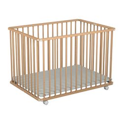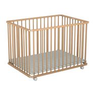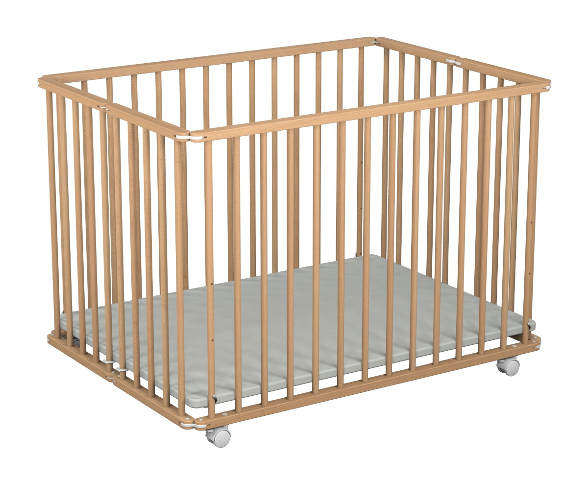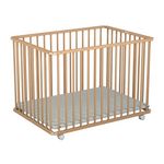 AT4 se plie en 4 pour vous offrir des produits solides et de qualité pour vos enfants. Ce parc en bois pliant Webaby naturel rectangulaire est robuste et très pratique : il se plie facilement pour être rangé en un tour de main, ses 4 roulettes à freins permettent de le déplacer très simplement et son fond PVC réglable sur 3 hauteurs est lessivable pour une hygiène parfaite !