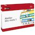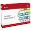 Atelier des mots 1 pour 2 enfants est un atelier d'entraînement qui propose de découvrir et d'aborder le principe alphabétique de manière simple et efficace. Les enfants commencent à composer quelques mots en autonomie. L'enfant apprend à reconnaître les lettres de l'alphabet et à reproduire des mots simples, d'après un modèle. La présentation de mots isolés, accompagnés d'une illustration, favorise la correspondance entre l'oral et l'écrit. Les 24 fiches d'activités sont réparties en 4 séries de 6 fiches de difficulté progressive (mots de 3, 4, 5 et 6 lettres). Le livret pédagogique décrit les objectifs, propose plusieurs pistes d'utilisation (atelier libre ou structuré) et des prolongements pour enrichir l'activité et imaginer des phrases. COMPETENCES DEVELOPPEES Connaître les correspondances entre écriture capitale et écriture script. Reconnaître et reproduire des mots simples (3 à 6 lettres). Ecrire des mots en utilisant les lettres. Conseil accompagnement du handicap : Familiarise avec les lettres (capitale et minuscule) et le sens de l'écriture. Encourage la lecture et la reproduction de mots simples, puis composés. Pions de grandes dimensions : préhension et emboîtement faciles.