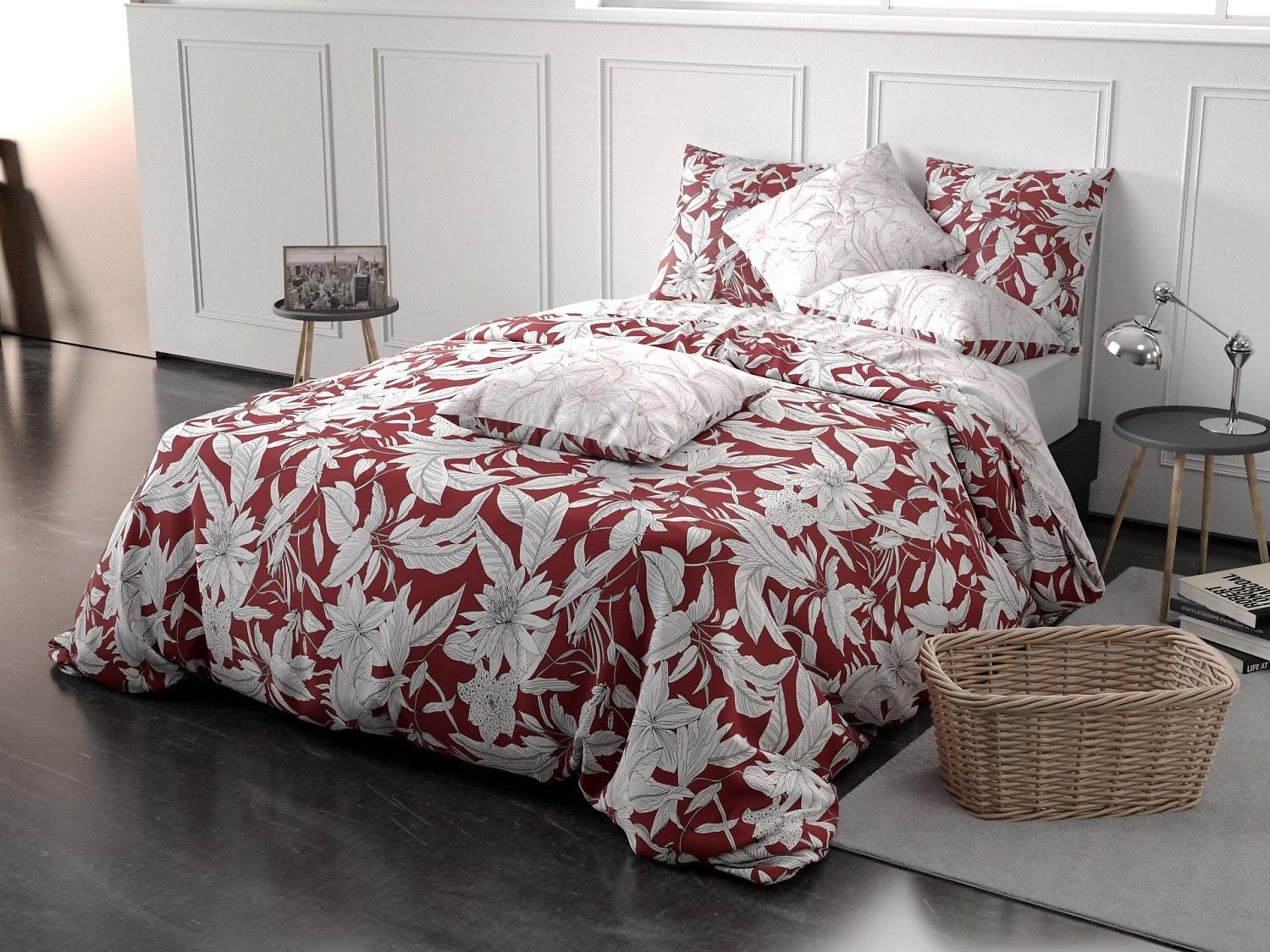 Parure housse de couette 100% coton 71 fils bonheur reversible