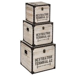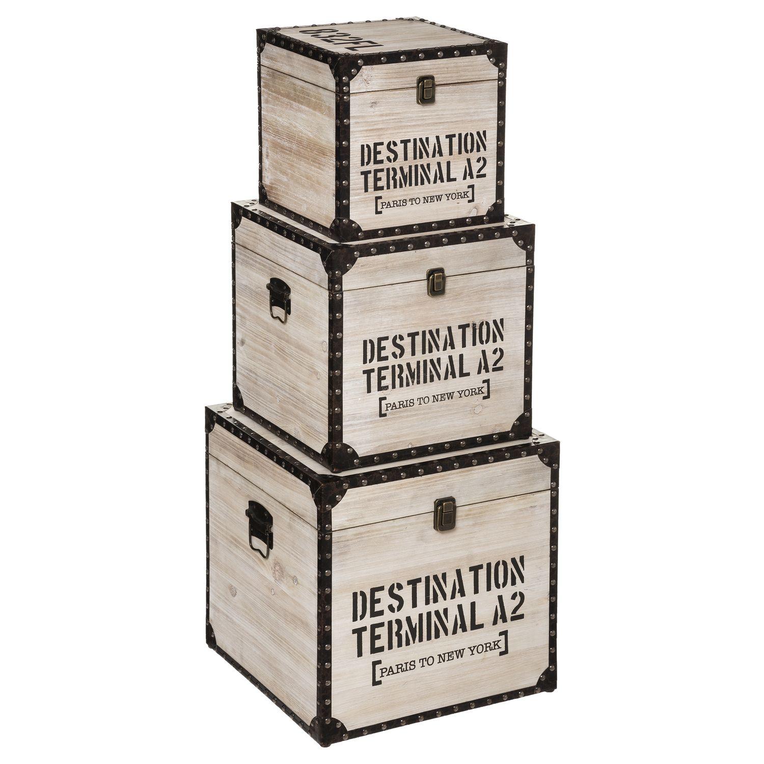 3 Malles carrées design bois Factory - Marron