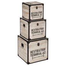 Apportez du rangement supplémentaire à votre intérieur en affichant une décoration vintage avec ces trois malles.FICHE TECHNIQUE- Structure en MDF - Panneau de fibres de bois- Revêtement intérieur en polyester- Fermoir en fer.- Lot de 3.CARACTERISTIQUES TECHNIQUES- Dimensions de la petite malle : L.