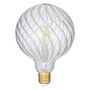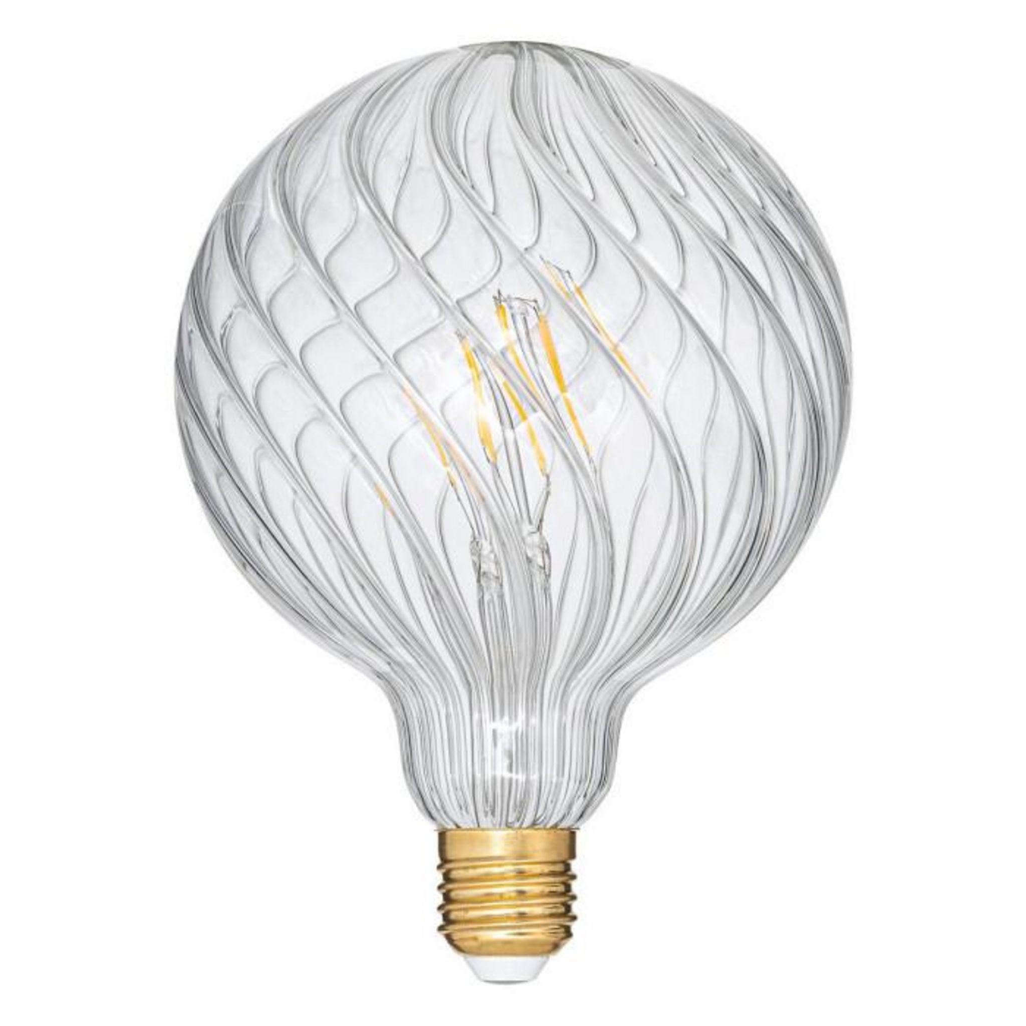 Informations Techniques : Dimensions : D. 12,5 x H. 17,3 cm Matière : Verre Spécificités : Pratique & Utile Ampoule LED à filaments Design globe strié Douille : E27 Poids : 0,13 kg Couleur : Transparent