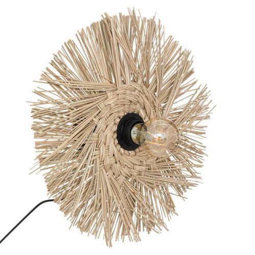 Informations Techniques : Dimensions : D. 34 x l. 0,5 cm Matières : Roseau, Acier Inoxydable & PVC Spécificités : Tendance & Utile Effet paille Interrupteur Forme ronde Ampoule non incluse Poids : 0,32 kg Couleur : Beige