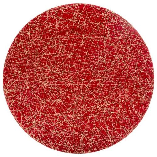 Informations Techniques : Dimensions : D. 33 x H. 1,5 cm Matière : Carbonate de Calcium Spécificités : Pratique & Utile Assiette de Présentation Forme Ronde Lignes Géométriques Tissu effet Velours Poids : 0,332 kg Couleur : Rouge & Or