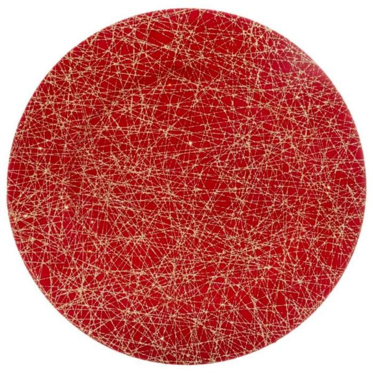 Assiette de Présentation Lignes 33cm Rouge & Or