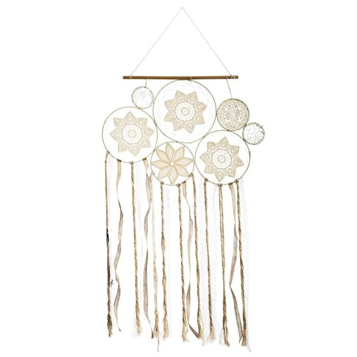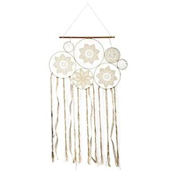 Informations Techniques : Dimensions : L. 59 x l. 2 x H. 95 cm Matières : Coton, Polyester & Hetre Spécificités : Suspension par corde Franges Poids : 0,28 kg Couleur : Blanc