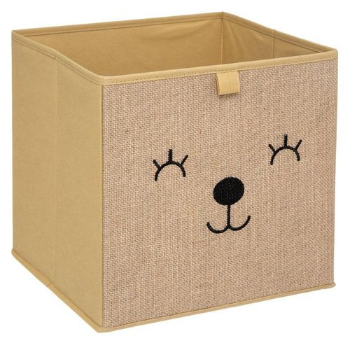 En savoir +Bac de rangement jute animalA la fois pratique et très joli, ce bac de rangement façon jute animal pour enfant installera une ambiance paisible et douce pour une belle chambre toujours rangée. Utile et pratique, il permettra de ranger tous les jouets et affaires.Décoré d'une jolie bouille d'animal souriant, ce petit bac souple de rangement avec languette pour enfant créera une ambiance ludique et tendre dans la chambre.Informations sur le bac de rangement jute animal :Couleur : marron caramel, beigeDimensions : L. 29 x P. 29 x H. 29 cmMatière : cartonPoids : 400 g
