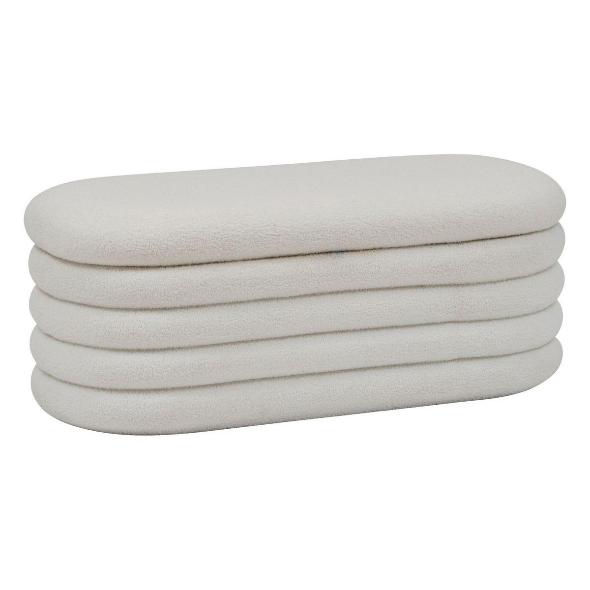 Le banc coffre GIULIA offre un espace d'assise confortable tout en proposant un rangement pratique à l'intérieur du coffre. Son revêtement en bouclette en font une pièce esthétique qui s'adapte à tous les intérieurs.