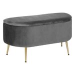Le banc coffre en velours Solaro d'Atmosphera arbore un design chic et élégant. Les piètements fins et brillants donnent un rendu moderne à l'assise volumineuse. La douceur du velours et un rembourrage bien garni assureront votre confort au quotidien. Le coffre intégré permet d'optimiser le rangemen