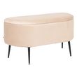Le banc coffre en velours Solaro d'Atmosphera arbore un design chic et élégant. Les piètements fins et brillants donnent un rendu moderne à l'assise volumineuse. La douceur du velours et un rembourrage bien garni assureront votre confort au quotidien. Le coffre intégré permet d'optimiser le rangement. Il est idéal dans une entrée, une chambre ou un bureau.