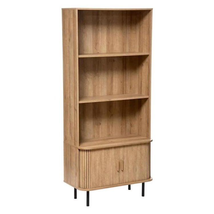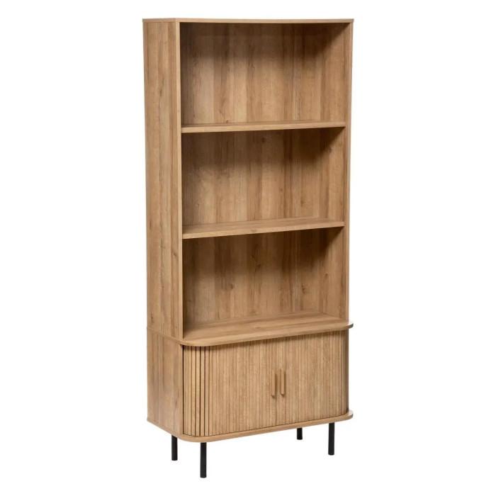 Informations Techniques : Dimensions : L. 80 x l. 39,8 x H. 179,6 cm Hauteur entre Étagères : 36/39 cm Matières : MDF, Panneaux Agglomérés & Acier Spécificités : Tendance & Pratique Bibliothèque Design 3 Étagère & 2 Portes Forme Rectangulaire Placage effet Bois A monter soi-même Poids : 34,42 kg Cou