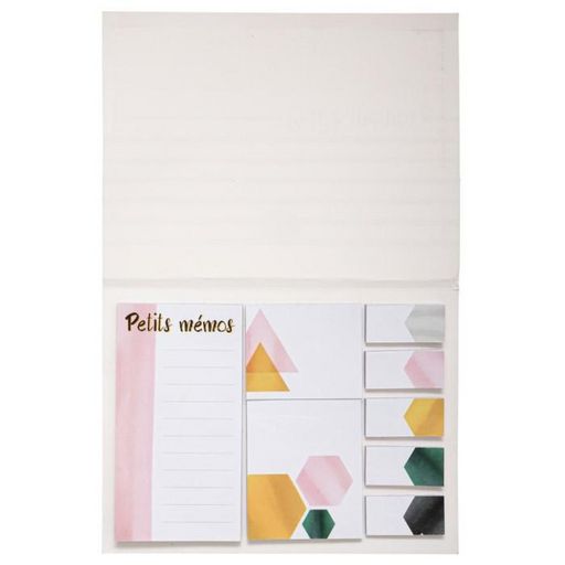 Informations Techniques : Dimensions : L. 18,5 x l. 14 cm Matière : Papier Spécificités : Pratique & Déco Bloc-Notes 50 pages Forme rectangulaire Poids : 0,095 kg Couleur : Blanc