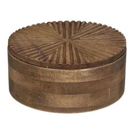 Informations Techniques : Dimensions : D. 18 x H. 8 cm Matière : Bois (Chêne) Spécificités : Pratique & Utile Boîte à Bijoux Forme Ronde Intérieur Compartimenté Miroir inclus Poids : 0,7 kg Couleur : Marron