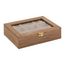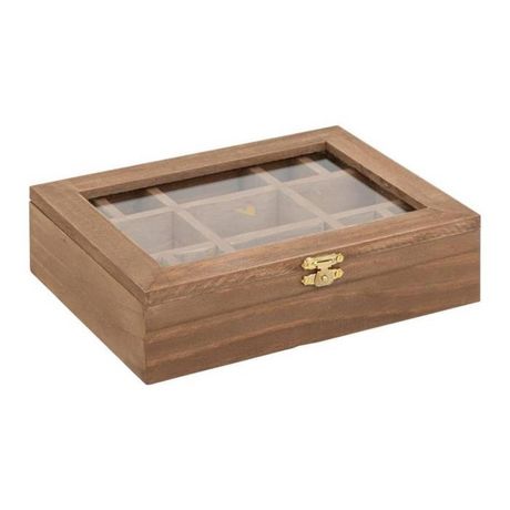 Informations Techniques : Dimensions : L. 20,5 x l. 5,3 x H. 15 cm Matières : Bois (Pin), Verre & MDF Spécificités : Pratique & Utile Boîte à bijoux 13 compartiments Forme rectangulaire Poids : 0,4 kg Couleur : Marron