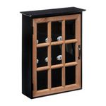 Informations Techniques : Dimensions : L. 30 x l. 10 x H. 39,5 cm Matières : MDF, Pin, Verre & Métal Spécificités : Design & Pratique Boîte à clés retro Avec 9 crochets et porte vitrée Facile d'utilisation & d'entretien Poids : 1,8 kg Couleur : Noir