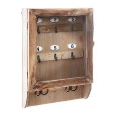 Boîte à clés rétro en boisCréez une décoration à la fois originale tout en étant très utile grâce à cette boîte à clés rétro en bois au look très vintage. Ambiance milieu du siècle dernier pour cette jolie boite à clés rétro avec ses 6 crochets pour ranger les clés et 2 crochets pour y suspendre des