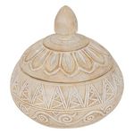 Informations Techniques : Dimensions : D. 15,5 x H. 14,5 cm Matière : Polyrésine Spécificités : Déco & Utile Boîte avec couvercle Motifs orientaux Poids : 0,73 kg Couleur : Beige