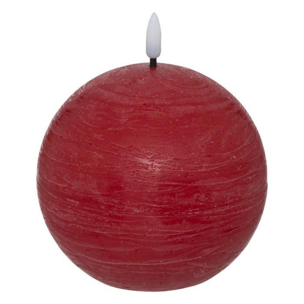 Informations Techniques : Dimensions : D. 8 x H. 9,5 cm Matières : Paraffine & Polypropylène Spécificités : Déco & Réaliste Bougie boule à LED Mèche 3D Effet scintillant Pile incluse Éclairage : Blanc chaud Type de pile : 1 x CR2032 / CR2034 - 3V Poids : 0,13 kg Couleur : Rouge