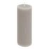 Informations Techniques : Dimensions : D. 5 x H. 14 cm Matière : Paraffine Spécificités : Pratique & Utile Bougie sans parfum Avec striures décoratives Forme ronde Durée de combustion : 26 heures Capacité : 229 g Poids : 0,23 kg Couleur : Gris Clair