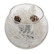 Informations Techniques : Dimensions : D. 10,5 x H. 8,5 cm Matière : Verre Spécificités : Pratique & Déco Bougie déco LED Décors de Noël Forme ronde Fonctionne à piles (non incluses) Type de pile : CR2032 / CR2034 - 3V Poids : 0,21 kg Couleur : Argent