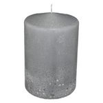 Informations Techniques : Dimensions : D. 10 x H. 15 cm Matière : Cire Spécificités : Pratique & Utile Bougie Déco Forme Ronde Effet Dégradé Avec Paillettes Durée de Combustion : 80 heures Type de Cire : Paraffine Type de Mèche : Coton Contenance : 90g Poids : 0,871 kg Couleur : Argent
