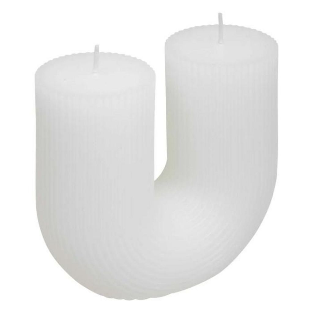 Informations Techniques : Dimensions : L. 11 x l. 5,1 x H. 12 cm Matière : Paraffine Spécificités : Design & Tendance Bougie striée sans parfum Avec 2 mèches Design en forme de U Durée de combustion : +/- 20 heures Poids : 0,4 Kg Couleur : Blanc