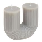 Informations Techniques : Dimensions : L. 11 x l. 5,1 x H. 12 cm Matière : Paraffine Spécificités : Design & Tendance Bougie striée sans parfum Avec 2 mèches Design en forme de U Durée de combustion : +/- 20 heures Poids : 0,4 Kg Couleur : Gris Clair